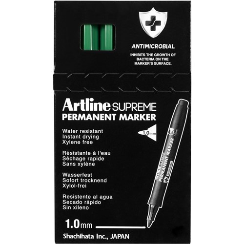 Artline Supreme Permanent Markers Bullet 1mm Green Pack Of 12