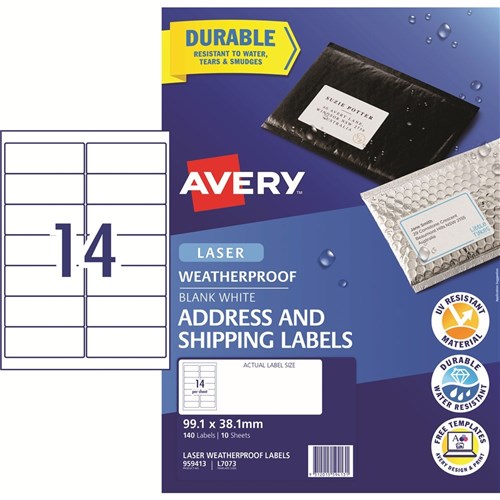 Avery Weatherproof Address & Shipping Laser White L7073 99.1x38.1mm 14UP 140 Labels