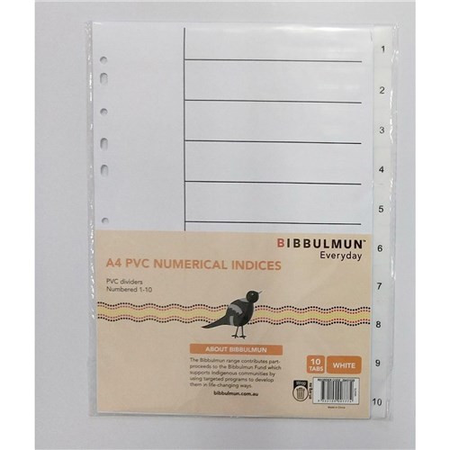 Bibbulmun PVC Divider A4 1-10 Tab Numbered White