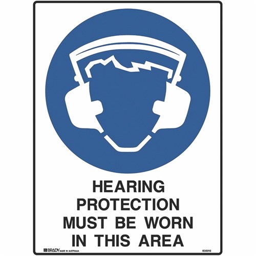 Brady Mandatory Sign Hearing And Eye Protection 450W x 600mmH Poly White/Blue