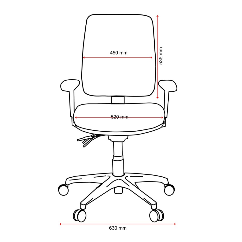 • Armrests. Ratchet height adjustable back/lumbar.