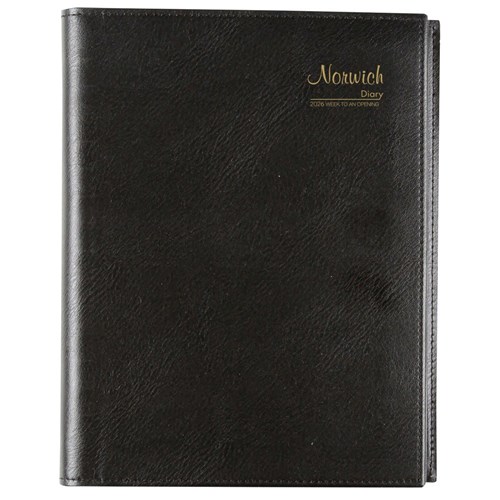 • Featuring a stylish flexible leather grain cover finished with the famous gold foil 'Norwich' logo, stitched edges and fine ivory paper.