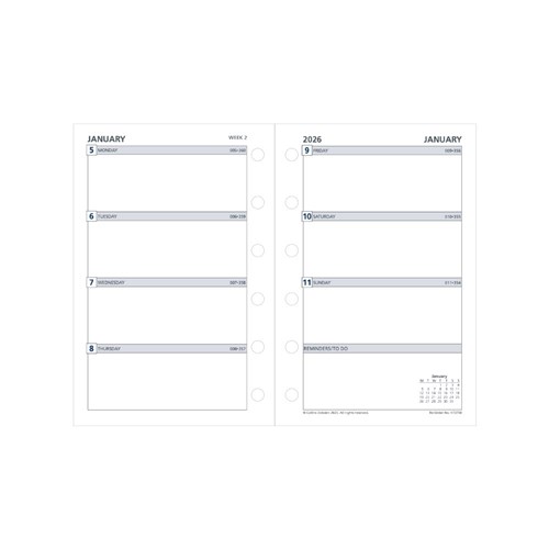 Debden Dayplanner Refill Pocket 80 x 120mm Dated Week To View