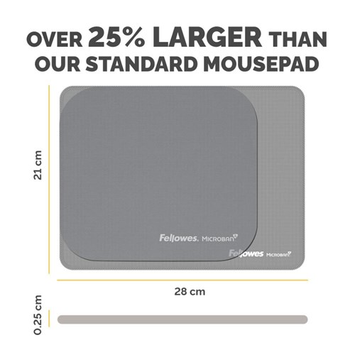 • Over 25 percent larger than our standard mousepads to encourage greater movement, reducing small repetitive movements which can cause wrist pain.