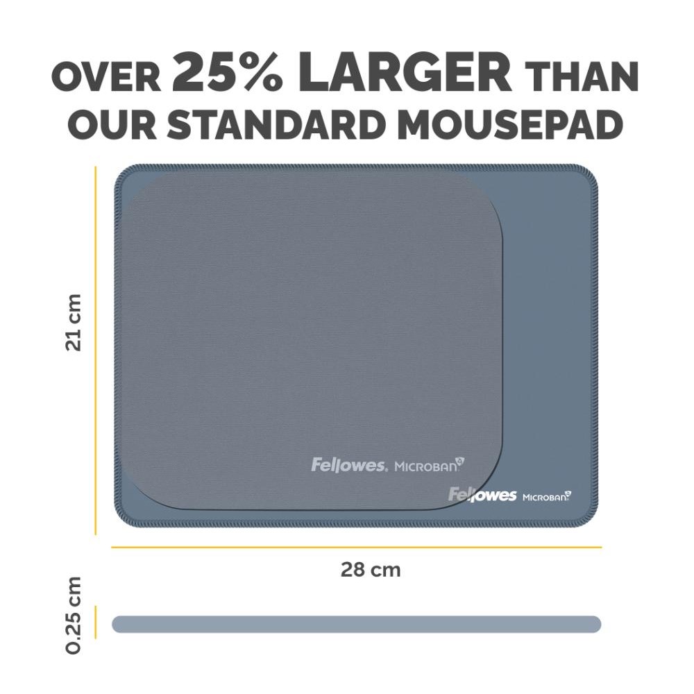 • Over 25 percent larger than our standard mousepads to encourage greater movement, reducing small repetitive movements which can cause wrist pain.
