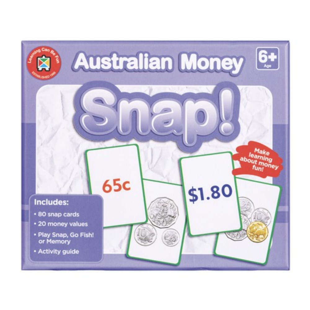 • Includes: 80 snap cards, 20 money values and activity guide.