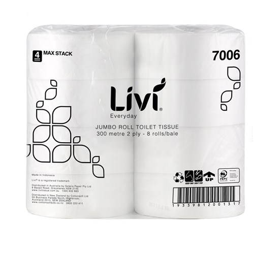 Livi Everyday Toilet Paper Jumbo Roll 2 Ply 300m Pack Of 8