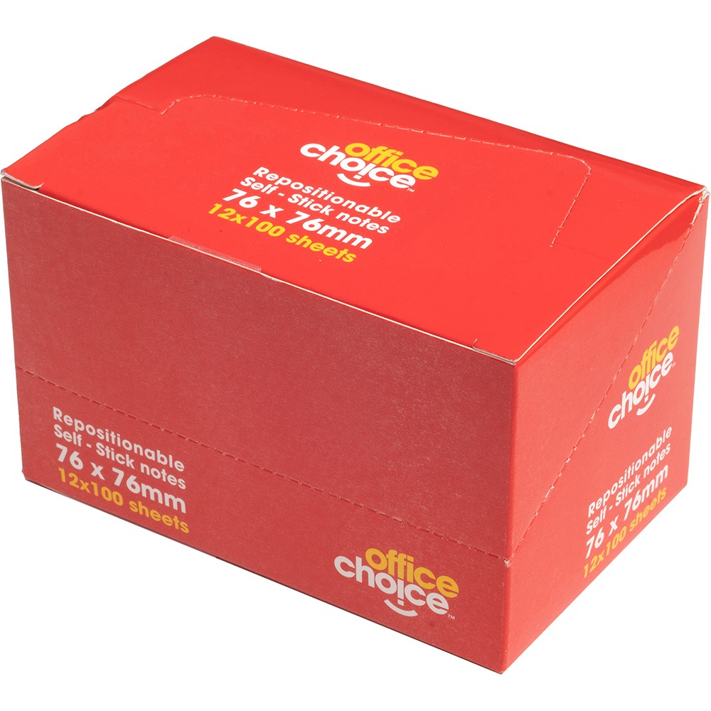 Office Choice Repositionable Sticky Notes 100 Sheets Yellow 76 x 76mm Pack of 12