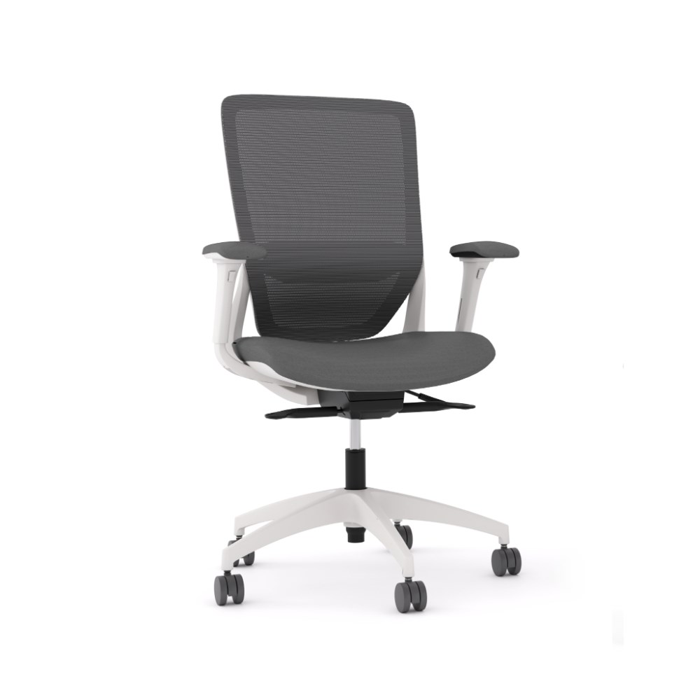 OLG Engage Task Chair With Seat Slide White Nylon Base Black Fabric Seat Mesh Back