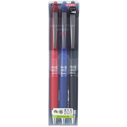 Pilot Frixion Point Knock Pen 0.4mm Synergy Tip Assorted Colours Wallet of 3