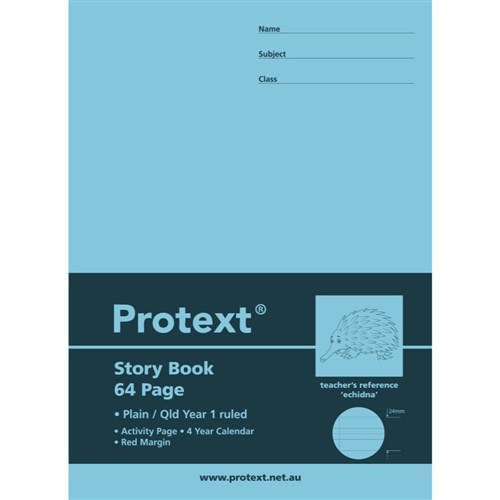 Protext Story Book 330 x 240mm QLD Year 1 1/2 Ruled 24mm 1/2 Plain + Margin 64 Page Echidna