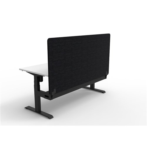 • Electric height adjustable single sided workstation with Natural White top and Black Satin frame, Black Eco screen and cable tray.