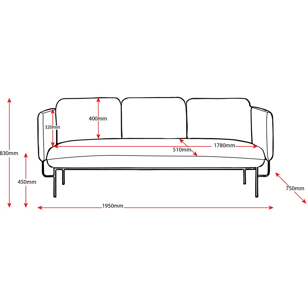 • Chair Dimensions: 1950W x 750D x 830mmH.
