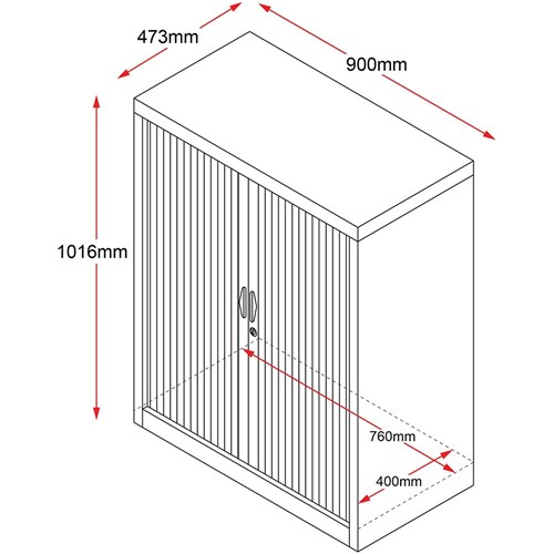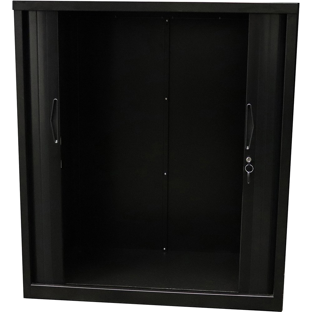 • Rapidline Go Tambour Door Cupboard No Shelves Included 900W x 473D x 1016mmH Black