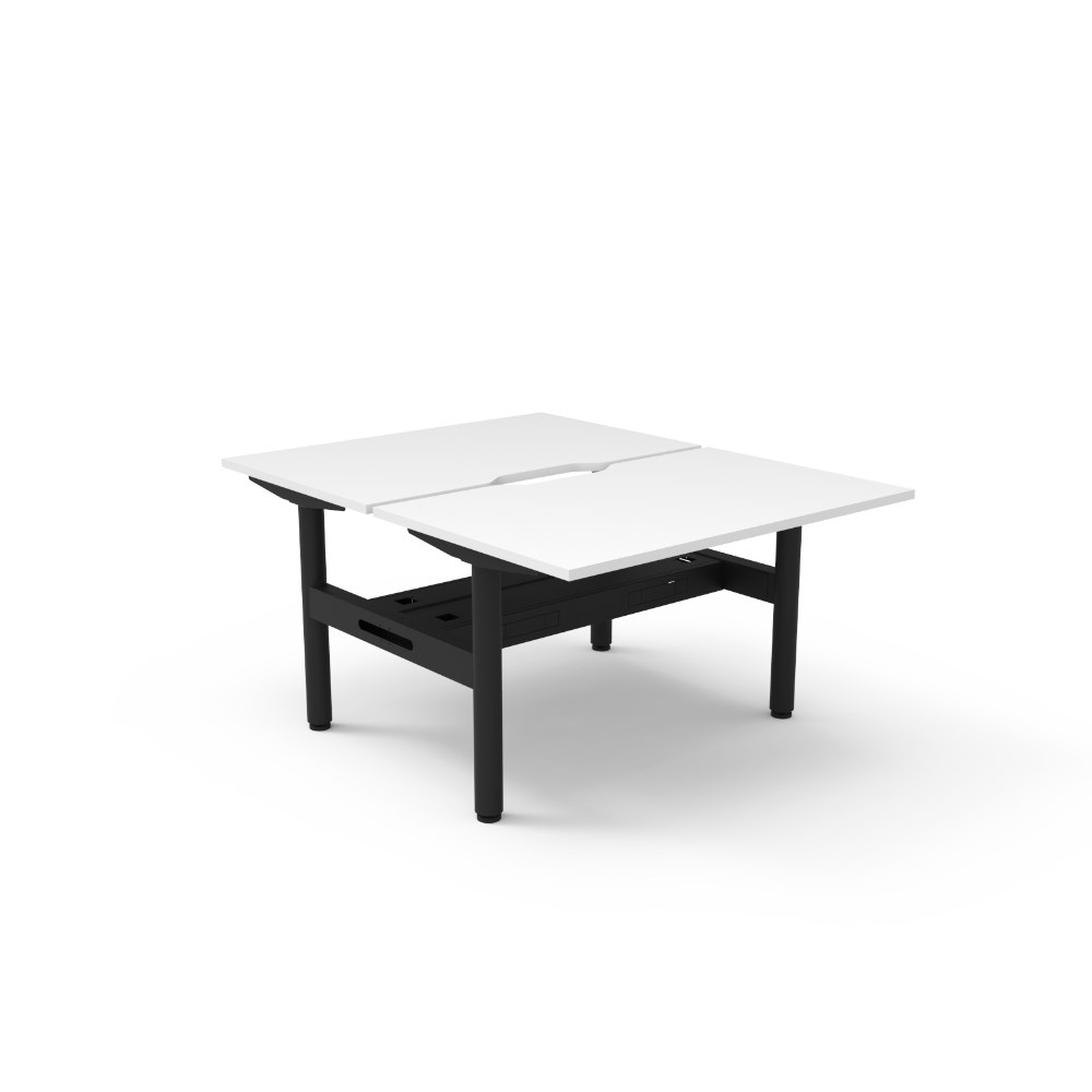 • Natural White top Black Satin frame. Double sided workstation with cable tray.