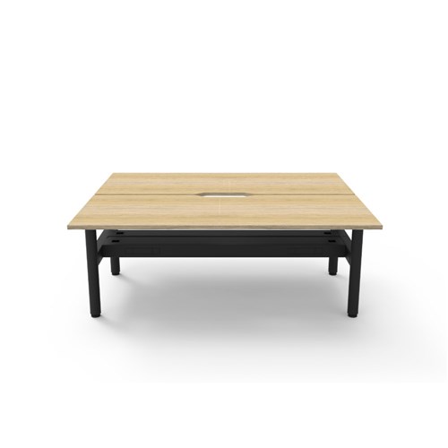 Rapidline Halo Static Back To Back Workstation + Cable Tray 2 Person 1800Wx730mmH Oak/Blk