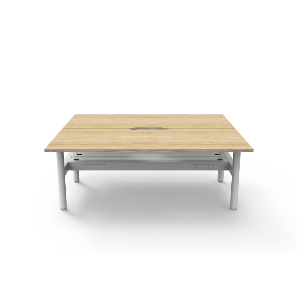 • Natural Oak top White Satin frame. Double sided workstation with cable tray.