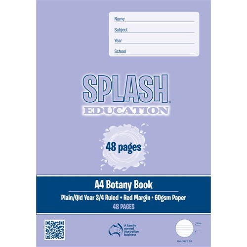 Splash Education Botany Book Plain QLD Year 3/4 Ruled A4 With Red Margin 48 Page