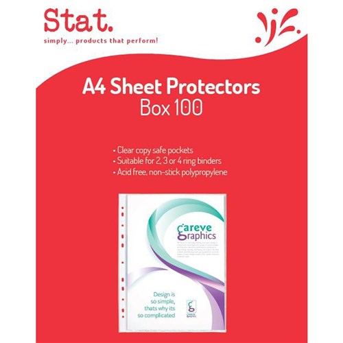 Stat Sheet Protectors A4 Light Weight 35 Micron Clear Box of 100