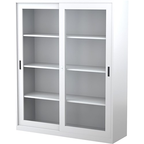 • Steelco Sliding Glass Door Cabinet 3 Shelves 1500W x 465D x 1830mmH Silver Grey