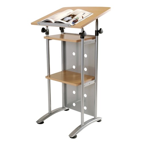 Sylex Quorum Lectern Fixed Shelves 600W x 500D x 1090-1250mmH Silver And Beech