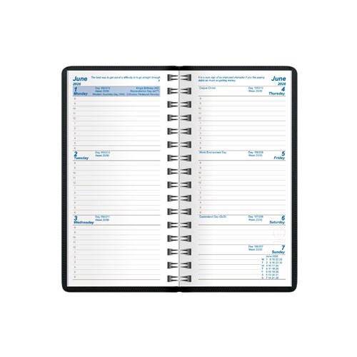 Upward Superior Pocket Diary A6/7 Week To View Black