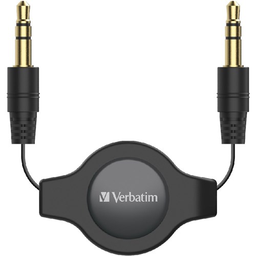 Verbatim 3.5mm Auxiliary Audio Cable Retractable 75cm Black