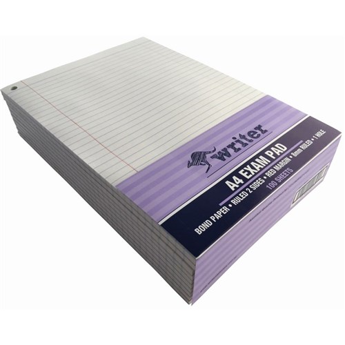 Writer Bond Pad A4 Exam Ruled 1 Hole 100 Sheets