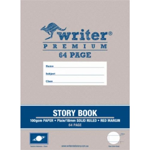 Writer Premium Story Book 330x240mm 64 Page Plain & 18mm Ruled W Margin 100gsm