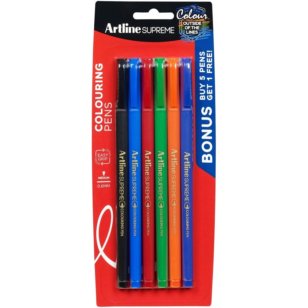 Artline Supreme Fineliner Pen 0.6mm Assorted Colours Pack Of 6