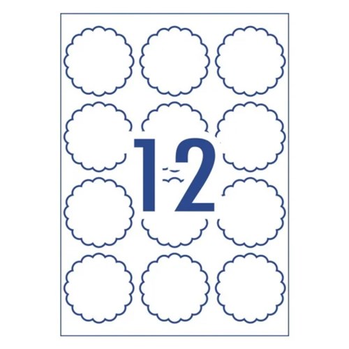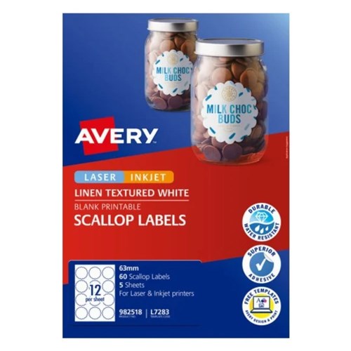 Avery Linen Textured Labels L7283 63mm Scallop White 12UP 60 Labels 5 Sheets