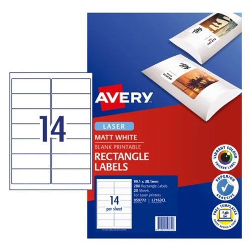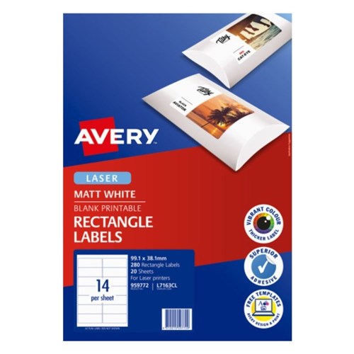 Avery Printable Labels L7163CL 99.1 x 38.1mm Rectangle Photo Matte White 14UP 280 Labels