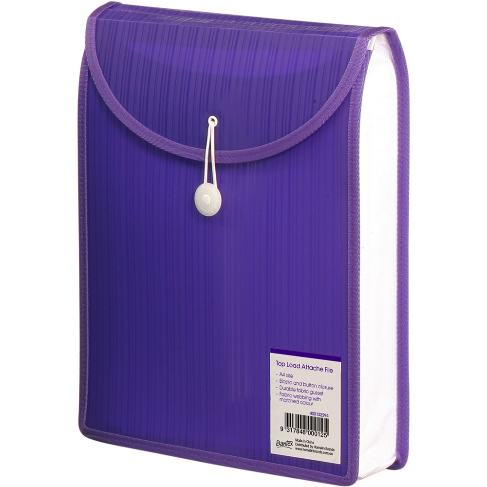 Bantex Attache File Top Load A4 Polypropylene With Button Closure Violet