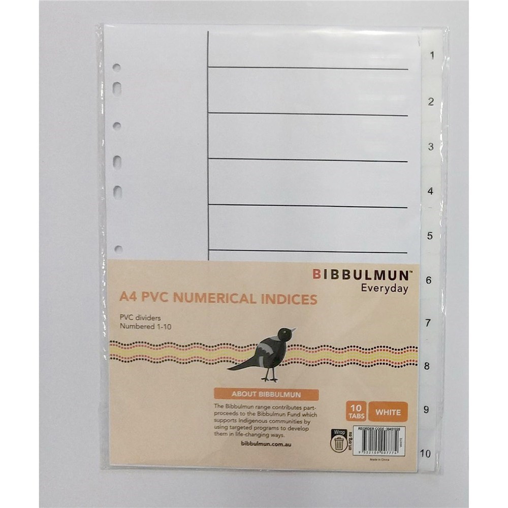 Bibbulmun PVC Divider A4 1-10 Tab Numbered White