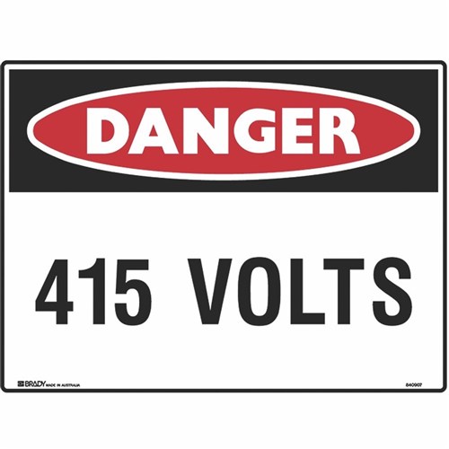 Brady Danger Sign 415 Volts 600W x 450mmH Metal White/Red/Black