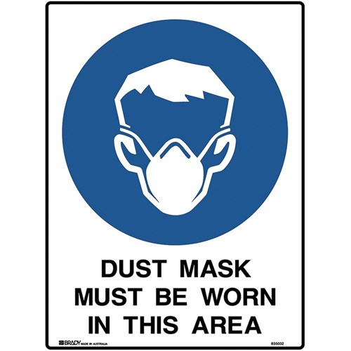 Brady Mandatory Sign Dust Mask Must Be Worn 450W x 600mmH Polypropylene White/Blue