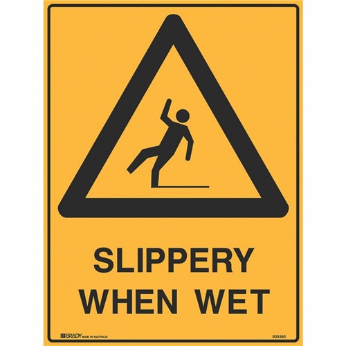 Brady Warning Sign Slippery When Wet 450W x 600mmH Metal Yellow And Black