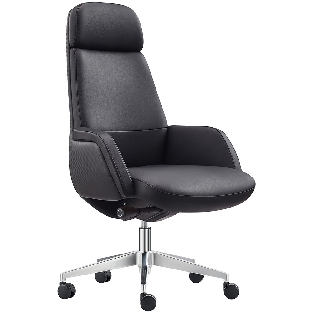 Captain High Back Executive Chair With Arms Leather Black