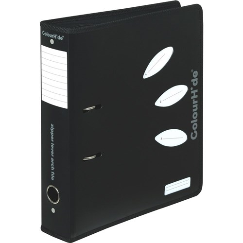 ColourHide Zip Lever Arch Binder A4 70mm PP Black