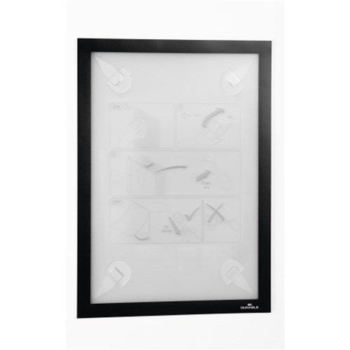 • Quick insertion and exchange of documents via a fold-back magnetic frame.