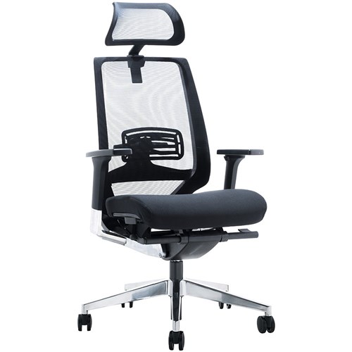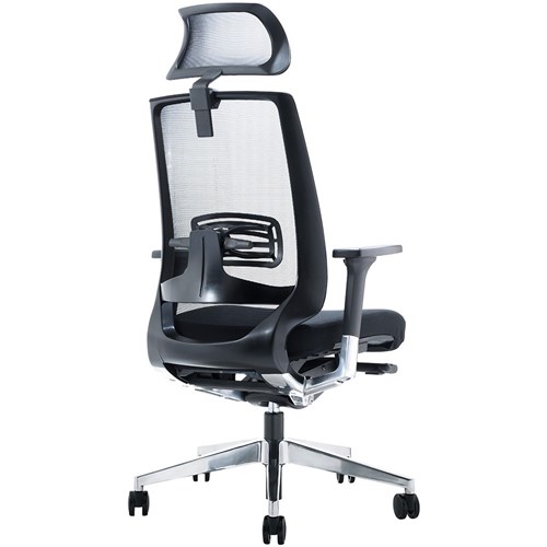 Evita High Back Executive Chair With Arms And Headrest Mesh Back Black Fabric Seat