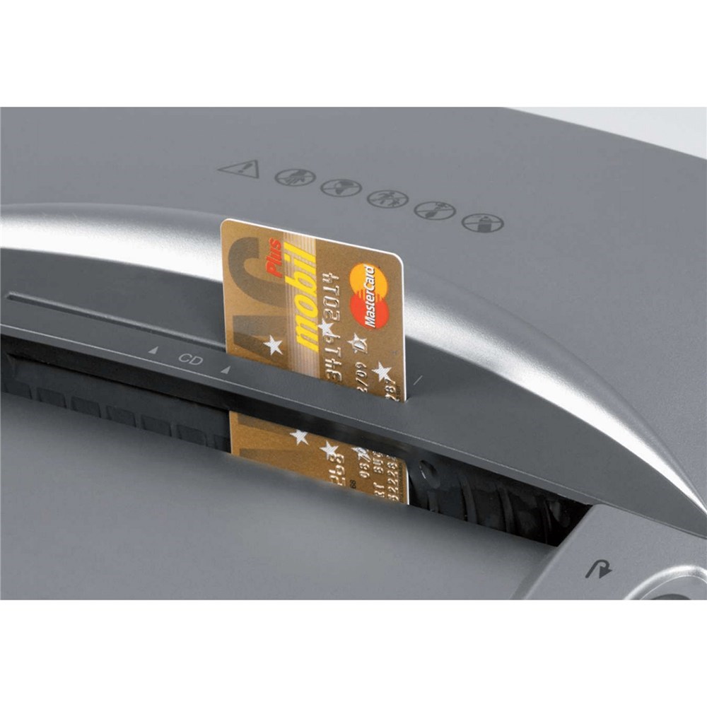 • Shreds staples pins and credit cards.