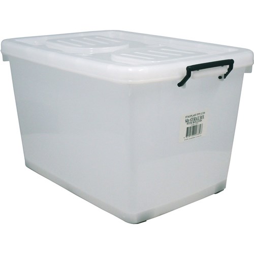 Italplast 90 Litre Plastic Storage Box With Lid And Rollers Clear