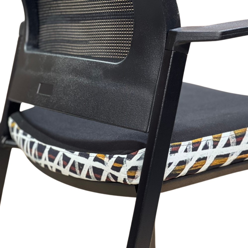 • A unique commercial fabrics designed by Paulina Puruntatameri (Indigenous Artist) combined with K2 Black Fabric to upholster the chair.