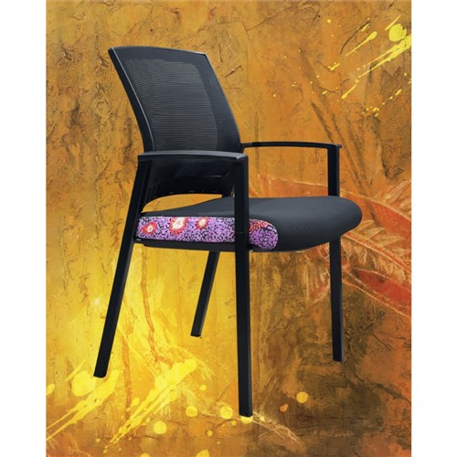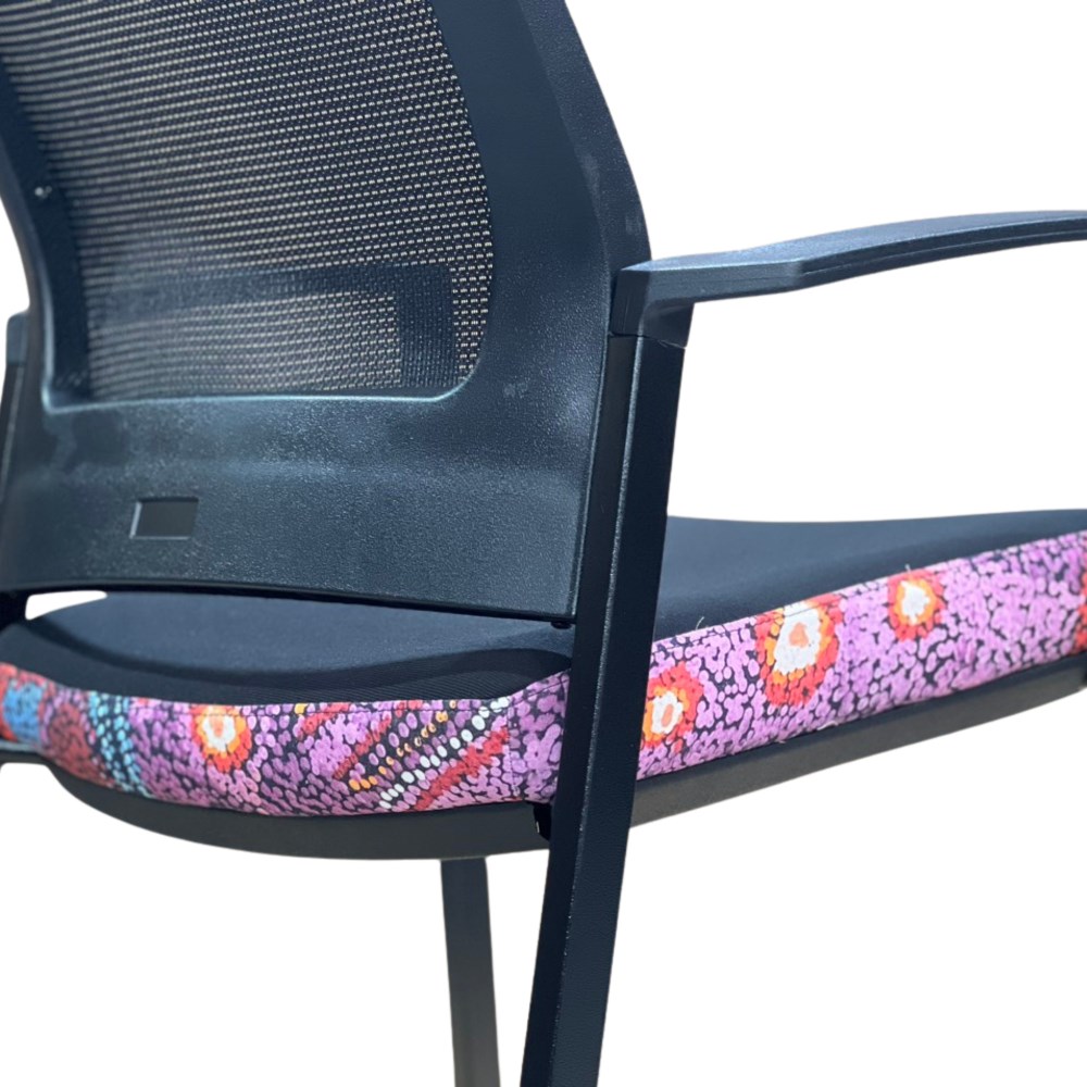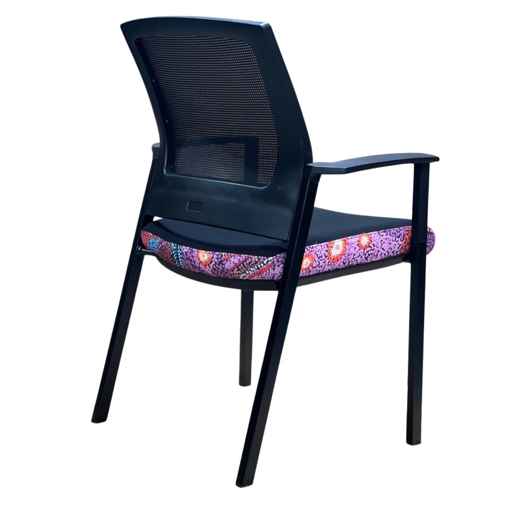 • A unique commercial fabrics designed by Andrea Adamson (Indigenous Artist) combined with K2 Black Fabric to upholster the chair.