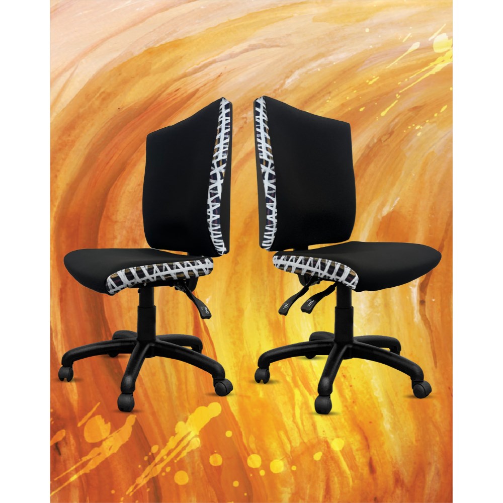 • A unique commercial fabrics designed by Paulina Puruntatameri (Indigenous Artist) combined with K2 Black Fabric to upholster the chair.