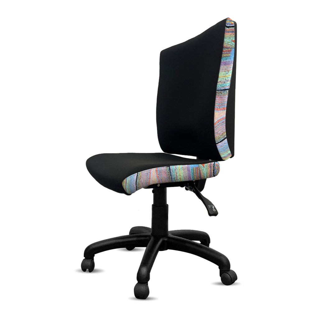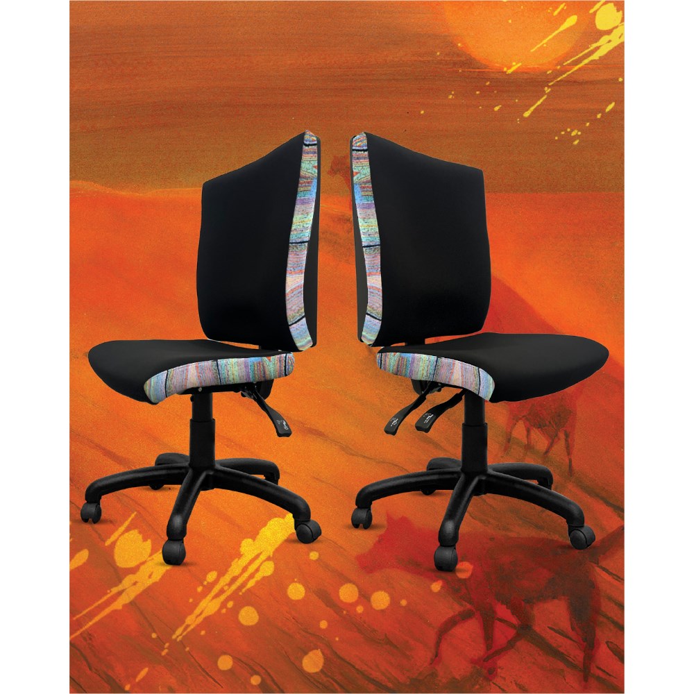 • A unique commercial fabrics designed by Liddy Napanangka Walker (Indigenous Artist) combined with K2 Black Fabric to upholster the chair.