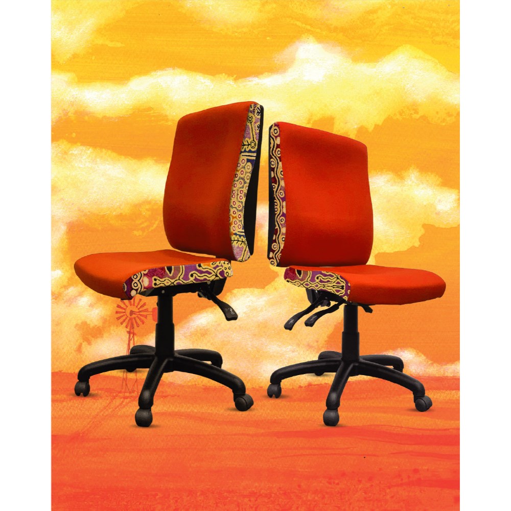 • A unique commercial fabrics designed by Paddy Stewart (Indigenous artist) combined with K2 Golden Orange Fabric to upholster the chair.