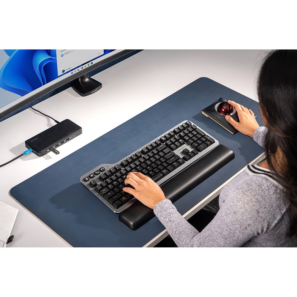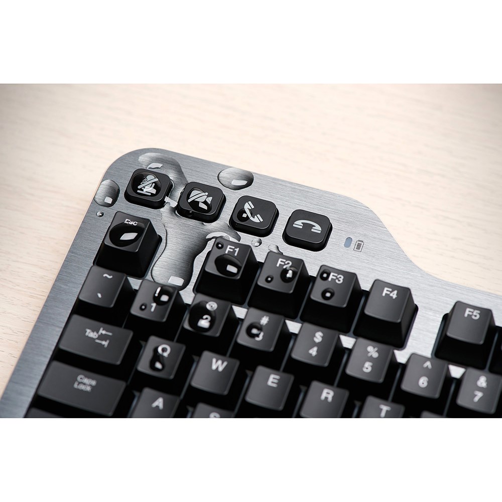 • Supports all-day typing comfort via a thoughtfully designed full-size aluminium frame.