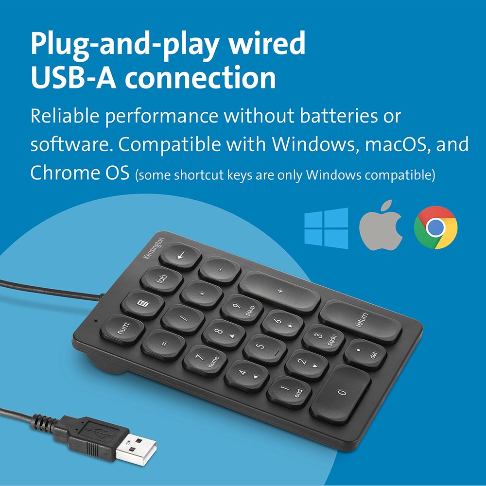 • 21-Key number pad with four shortcut keys is a smart addition to a laptop or keyboard that is not equipped with a number pad. Shortcut keys allow frequently used commands with the press of a button (some shortcut keys are only Windows compatible).